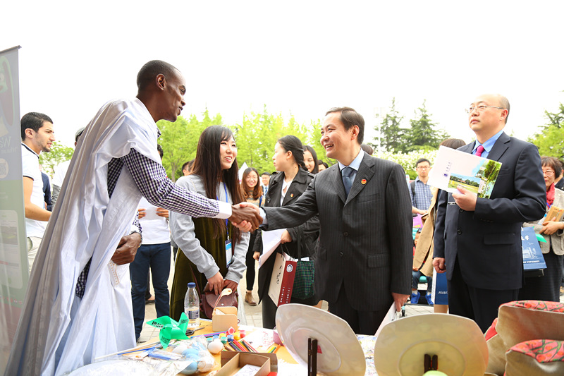 开幕式结束后,各位领导和嘉宾到各国留学生展区进行参观,并观看了主舞台各国节目表演。