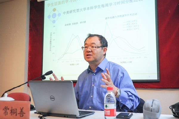 常桐善博士围绕学生层面的学习投入、学校层面的本科教育投入、教师层面的本科教学投入、行政工作人员层面的学生服务和发展指导性投入这四个方面,畅谈了提升本科教育质量的主要途径。他还结合美国加州大学伯克利分校的案例,从改革大学的决策模式、大学组织结构、教学模式、评估模式和服务体系等层面,分析了以学生为中心的实践案例和教学改革成效。最后,常博士以《三国志·蜀书·先主传》中的“勿以善小而不为”作为结尾,讲述了本科教育质量提升的根本目的是要围绕学生的全面发展,本科教育归根结底要以学生为中心,教育无小事,需要大家一起一点一滴去做好。