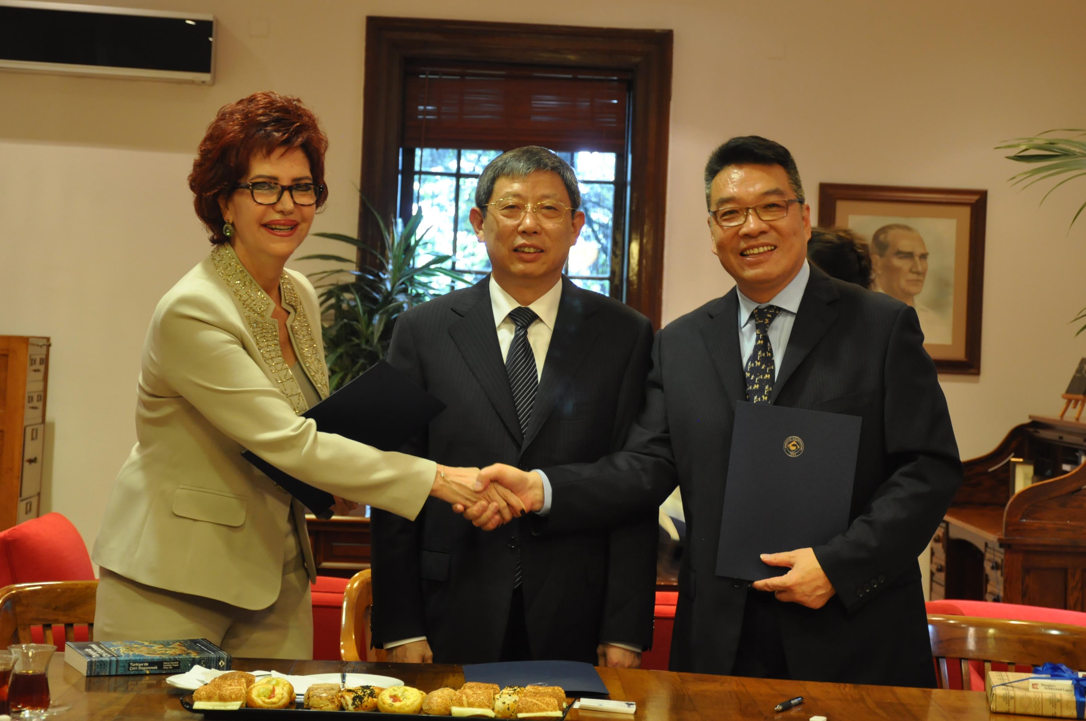 随后,杨雄市长一行来到了孔子学院。土耳其第13届汉语桥比赛二等奖获得者苏蕾娅表演了茶艺。在小提琴的伴奏下,茶具在其手中灵活地运动。随后,苏蕾娅同学还清唱了《茉莉花》,并向来访的嘉宾奉上了最新的龙井茶。海峡大学舞蹈俱乐部的学生表演了土耳其舞蹈,赢得了来访嘉宾的一阵阵掌声。最后,杨雄市长与同学们一一握手,同学们用中文向杨市长问好;有的同学还说起了上海话。访问在一片愉快的气氛中走向尾声。