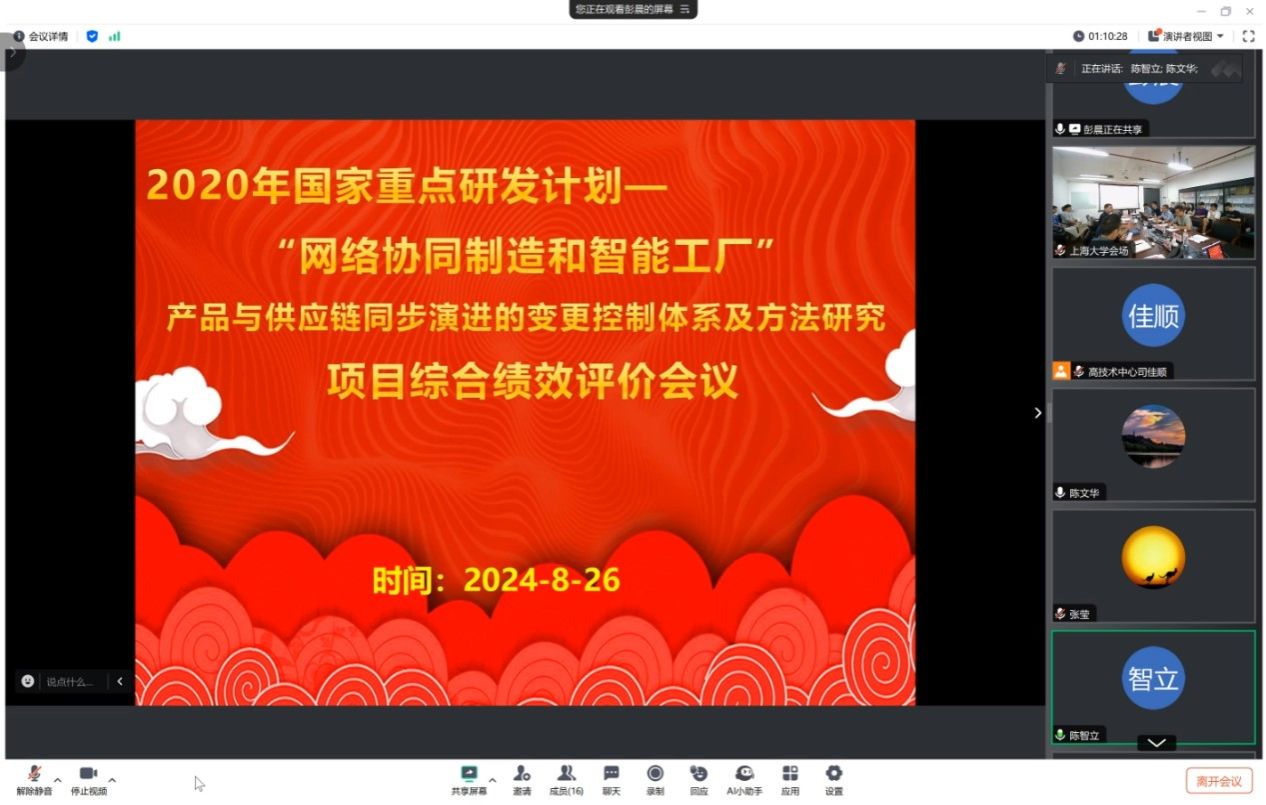 近日,国家重点研发计划“网络协同制造和智能工厂”重点专项项目“产品与供应链同步演进的变更控制体系及方法研究”的综合绩效评价会议在机自大楼702B室以线上线下相结合的形式召开。