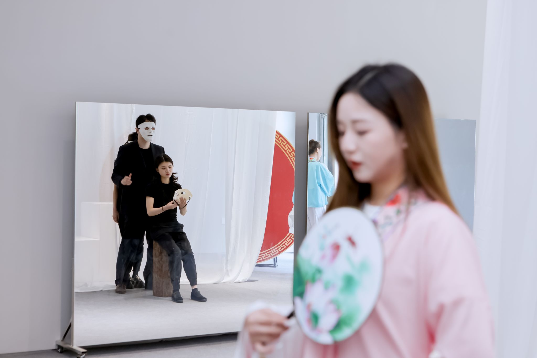 开幕式的尾声,参会领导、嘉宾一同参观了学院各大专业展区。各专业通过短片放映、表演剧场、数字交互、杜比全景声音频体验、特效造型还原、模型制作展示等形式,通过影像艺术、沉浸式戏剧演绎、数字媒体技术等方式极大地丰富了展演现场感官体验,展现出温影师生过往十年在影像艺术领域的独特见解和创造力。参观现场,大家纷纷驻足观看,共同感受师生的创作风貌。