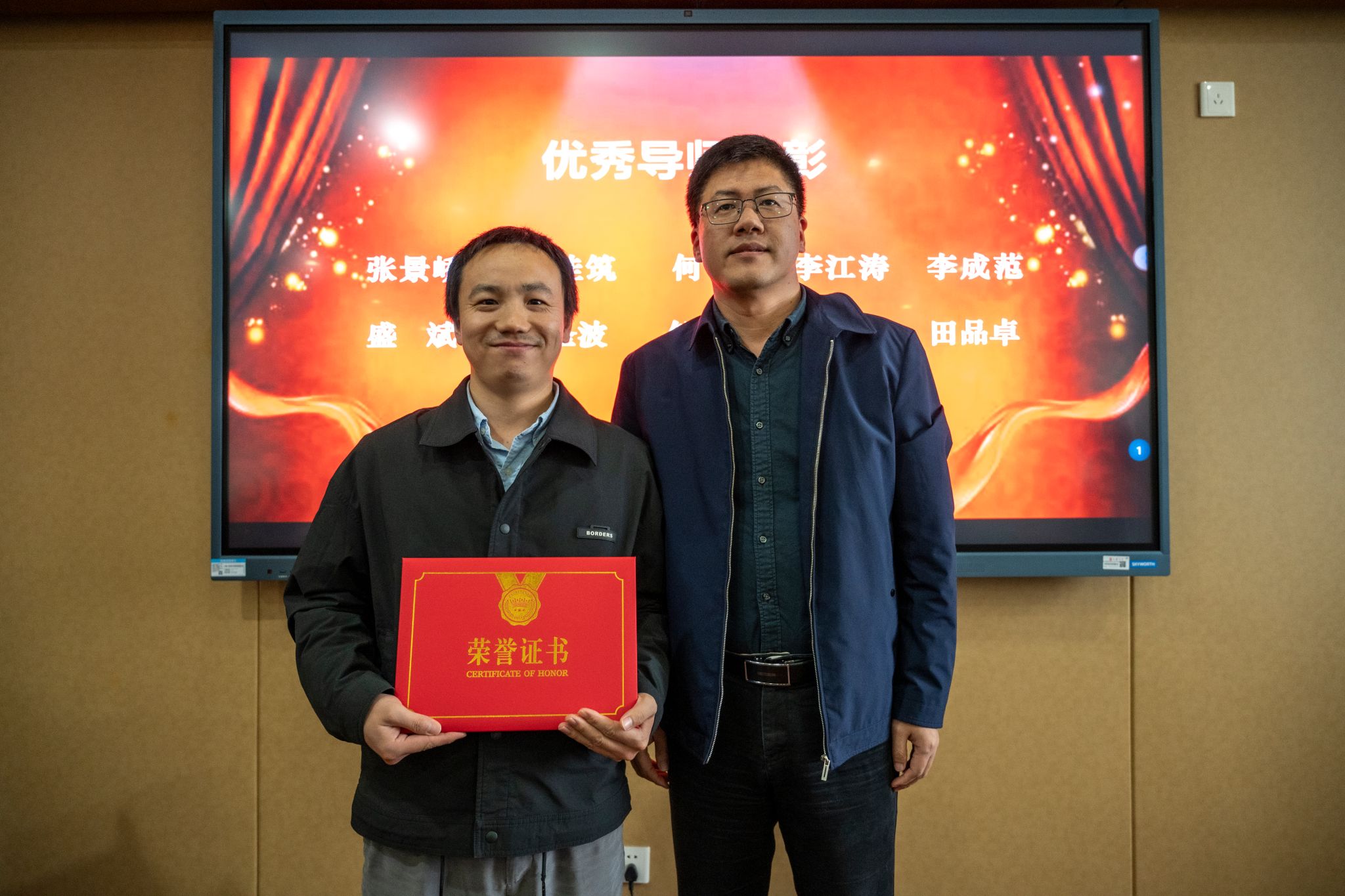 综合导师育人成果及前期学生评价调研问卷,学院评选出2023-2024学年10名优秀本科生全程导师:张景峤、戴佳筑、何冰、李江涛、李成范、盛斌、陈圣波、邹国兵、王皙、田品卓。本科生书院管理中心(“一站式”学生社区中心)副主任佟丽宁,学院党委书记朱宏涛,特邀党建组织员吴仲钢为导师们颁发荣誉证书。