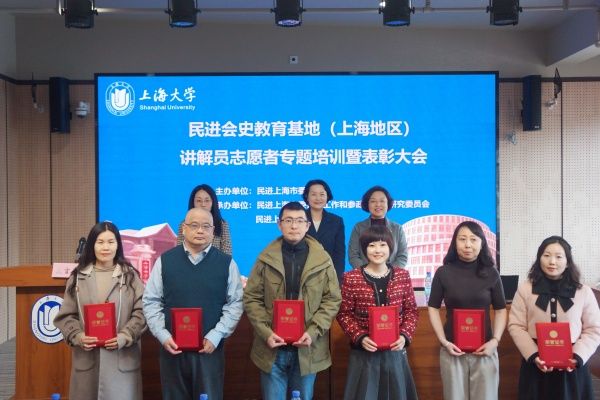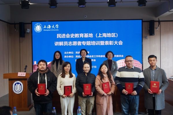 会上,民进上海市委研究室副主任(主持工作)谈玲宣读了《关于表彰2024年民进会史教育基地(上海地区)优秀讲解员志愿者的决定》。杨蓉、周丽昀、谭婷向优秀讲解员志愿者颁发奖状。优秀志愿者代表徐春燕、董子宾、张伟围绕会史宣讲和会史学习的体会作了交流发言。