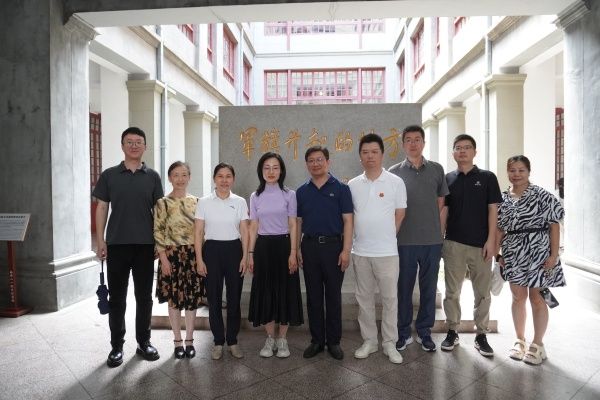在南昌,学习交流团一行参观了八一南昌起义纪念馆,重温一段波澜壮阔的历史,缅怀老一辈革命家精神。在九江,大家来到九三学社全国传统教育基地——许德珩生平事迹馆瞻仰学习。作为九三学社的重要创始人,许德珩先生为民主革命和社会主义革命事业奋斗一生的事迹,深深感动了在场的每一位社员。九三学社九江市委会专职副主委温智给大家详细介绍了许德珩先生的生平事迹,大家驻足聆听讲解,细细观摩照片,交流学习心得。适值九三学社创社八十周年之际,两校统战部领导、九三学社基层委员会主委和社员们聚拢于许德珩先生铜像前,发出共同的心声,祝贺九三学社八十岁生日快乐!