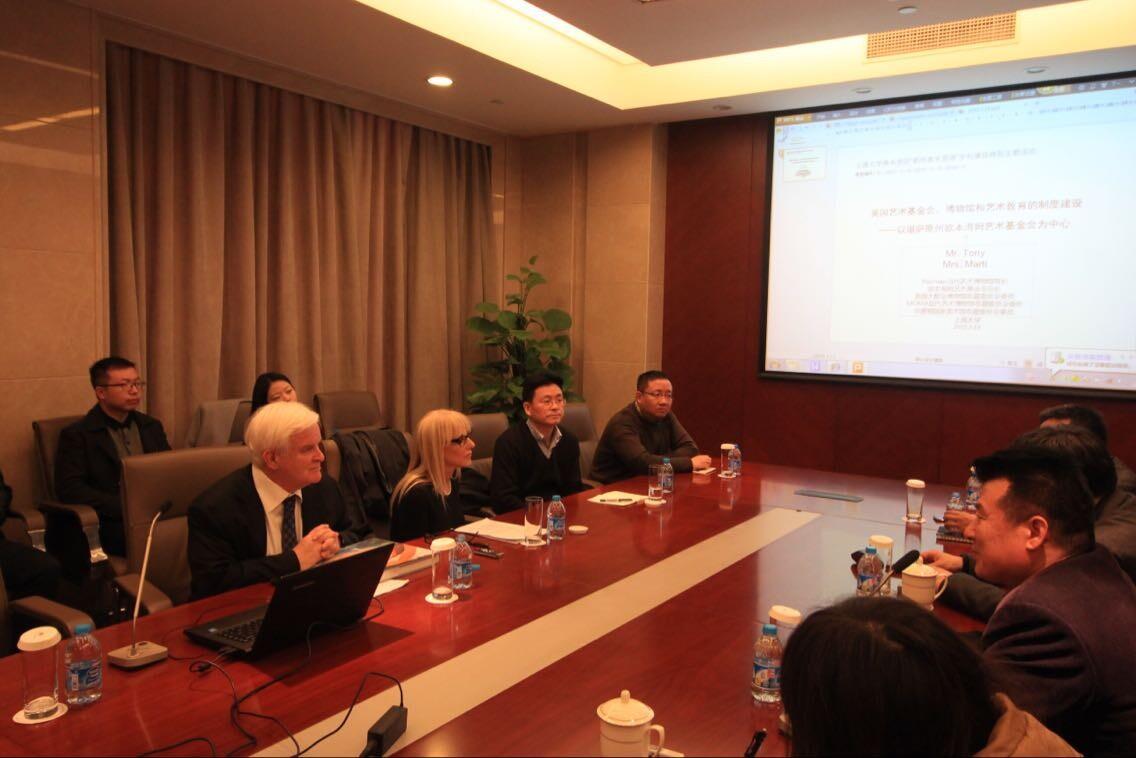 会议期间,Nerman当代艺术博物馆馆长Mr.Tony为本次会议做了特别的主题演讲:“美国艺术基金会、博物馆和艺术教育制度建设——以堪萨斯州欧本海姆艺术基金会为中心”。Mr.Tony阐述艺术基金会的来源、分类以及收藏,关注如何发现艺术品、如何收藏艺术品、如何支持艺术工作,希望做一些不同于收藏意义的探索研究。Mr.Tony指出美国的社区大学,主要收藏来自于慈善基金会的捐助,以便于公共推广和教育性最大潜能的发挥,并使得大学生更多地关注艺术。