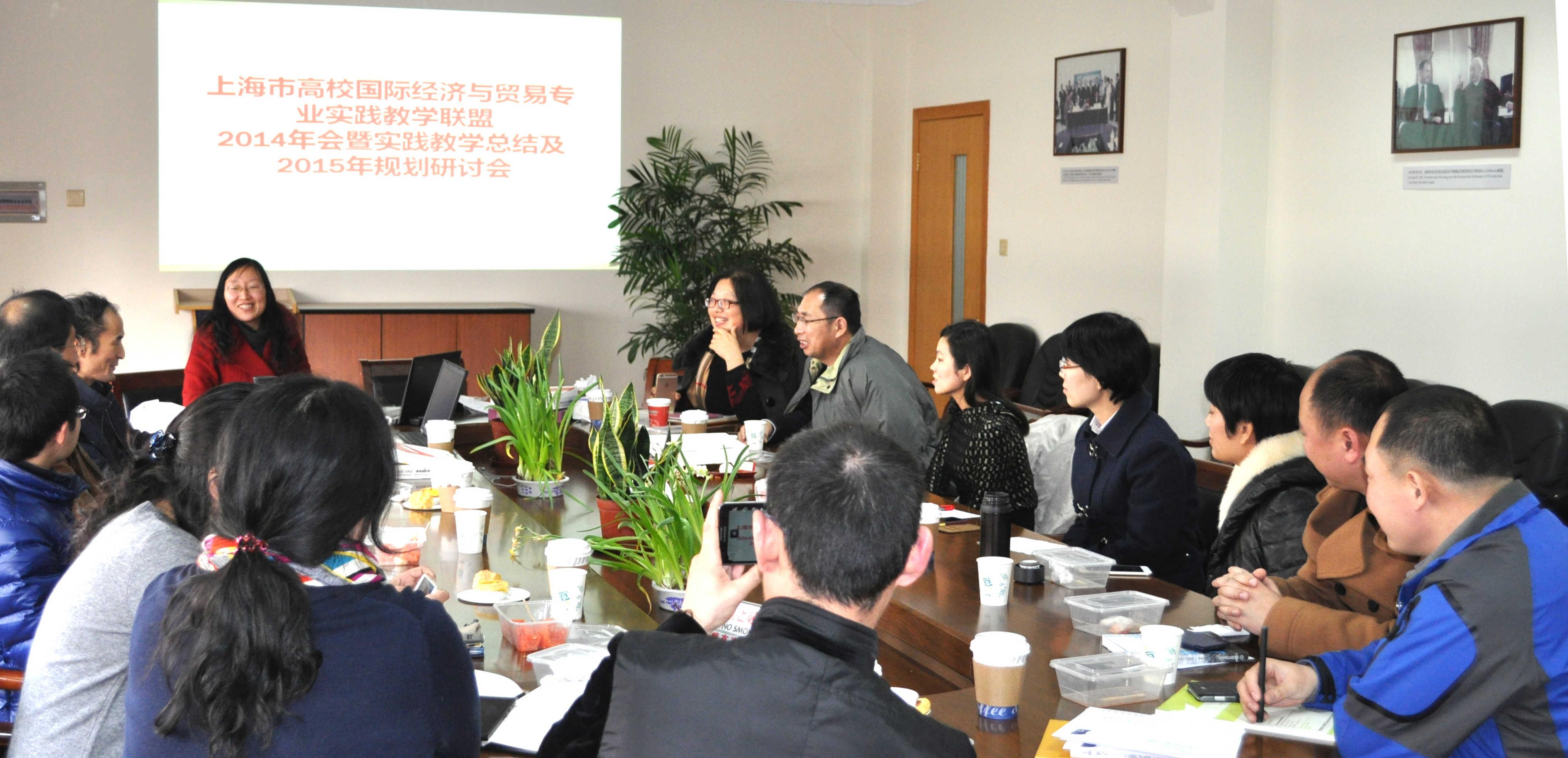 来自主要高校的其他联盟理事主要讨论了以下几个议题,分别是2014年国贸大赛经验分享,2015年国贸大赛上海市比赛的具体安排以及未来国际贸易专业实践教学新措施,来自上海市高校的主要理事代表积极进行发言。他们一致认为,国际贸易专业技能比赛对学生很有锻炼,可以设计一个联盟知识产权下的大赛评审方案,作为一个专业技能竞赛的标准,得到官方认可;联盟应该合作开发实践类课程,把专业竞赛纳入体系,编写合适的教材,将已有的成果及电子展位设计编制成案例集出版,来自北京大学出版社的嘉宾提出这类教材很有意义,愿意资助出版。最后,对国贸大赛市赛时间进行了安排。