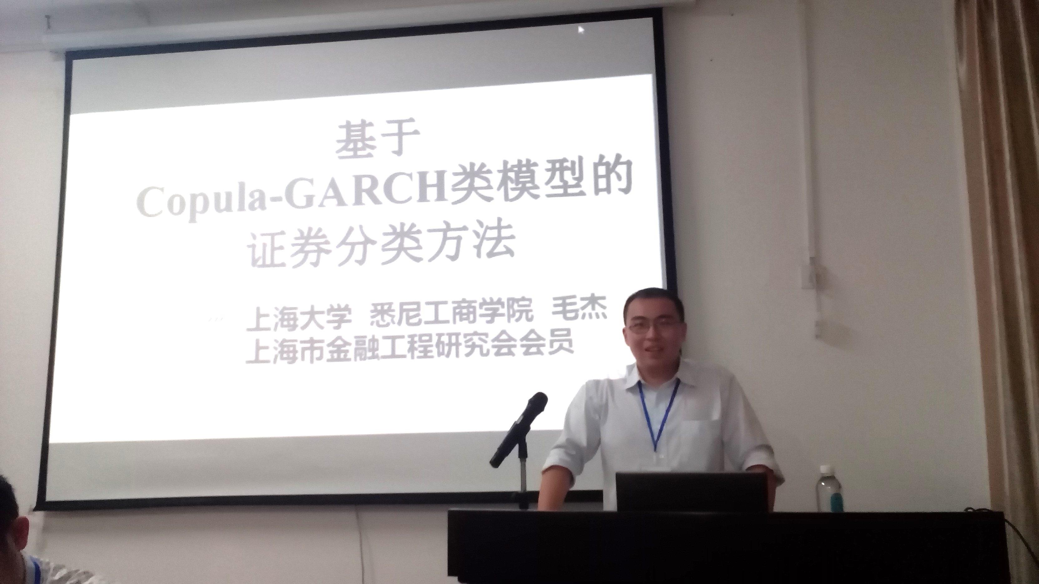 悉尼工商学院的13级金融专业硕士研究生毛杰同学,将其在全国研究生和青年学者金融学术论坛上的获奖论文《基于Copula-GARCH类模型的证券分类方法》再作认真修改后,向本届金融学年会投稿,经年会组委会的权威专家评审后被年会所录用。毛杰同学应邀在年会上宣读了论文,获得了与会专家学者的一致好评!