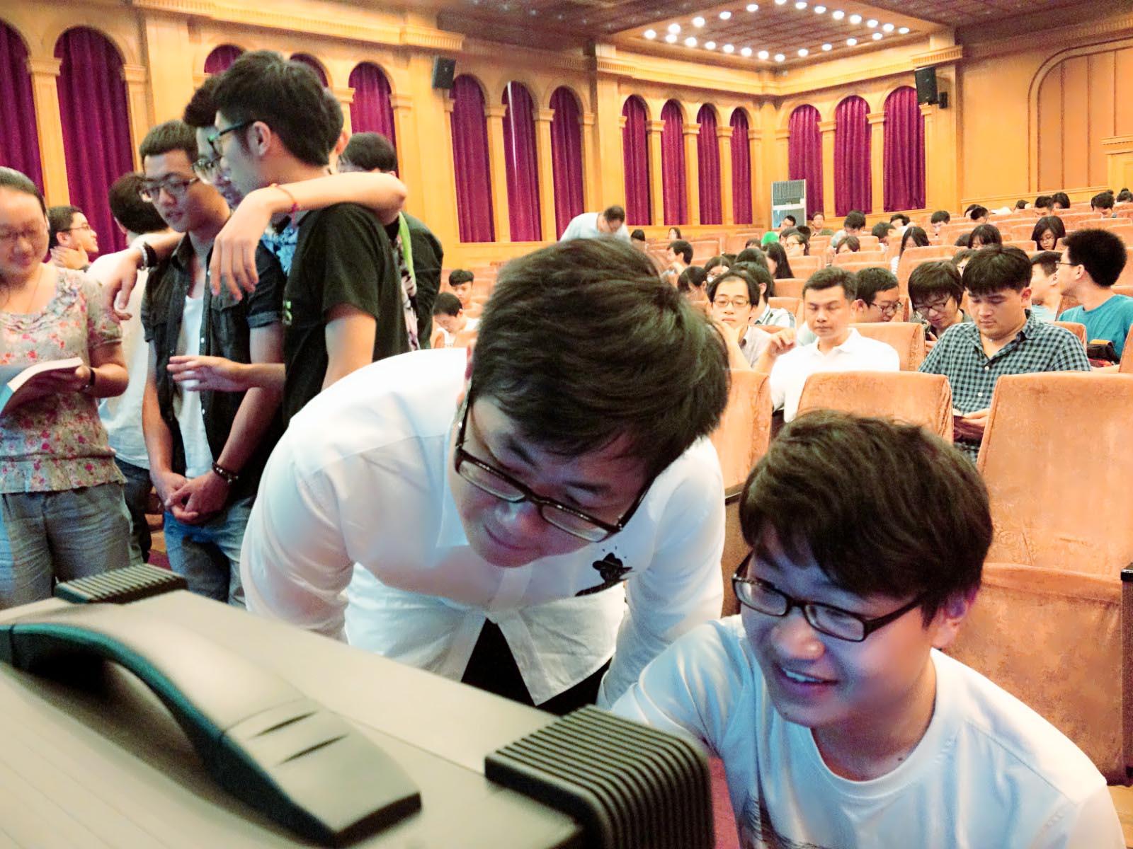 进入会场的影视学院师生首先被主席台前摆放的三套高端影视设备深深地吸引。大家纷纷围上前去,聆听强氧公司技术人员的介绍,观摩操作方法,甚至研究设备包装上的说明文字。影视工程系的同学们尤其热情,向公司负责人和技术人员提出了许多问题,得到了工程师耐心的回答。