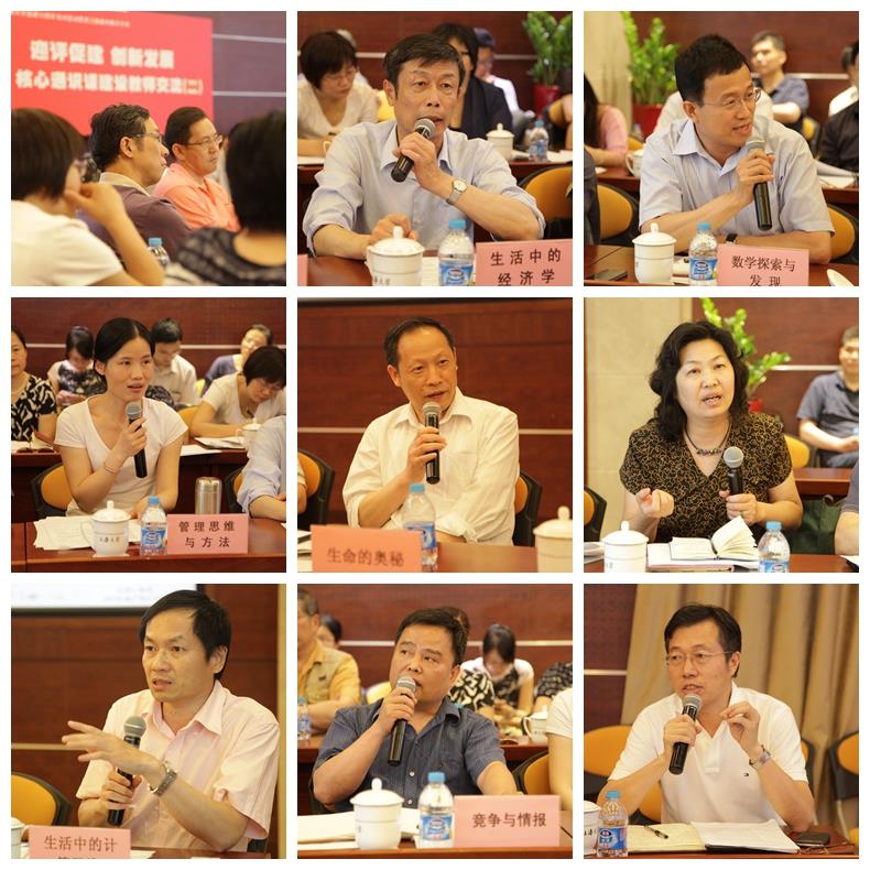 当下一模块的9门理工类核心课大纲和一句话理念的展示后,同样引发了与会教师们的精彩研讨。