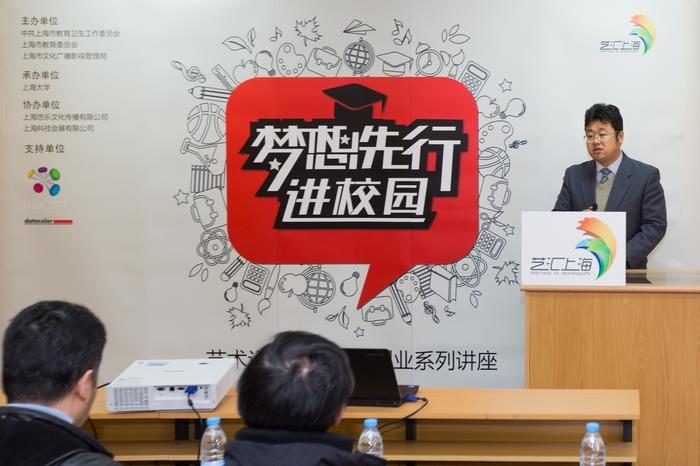 刘旭光院长在致辞中介绍了上海师范大学设计专业发展现状,认为一个学院培养了多少优秀设计师是学院教学成果最根本的考核指标,这次活动为学院的发展和学生的展示提供了一个良好的契机,并以“如何看待当代艺术”这一问题引出了本次讲座的主题。在讲座中,潘力教授通过展示丰富的当代艺术经典案例,分析了当代艺术的走向和可能性,并阐述了当代艺术的本质特征就是观念传达。潘教授主要研究领域为日本美术和公共艺术研究,他重点分析了日本当代公共艺术,指出日本当代公共艺术所注重的是人与人、人与社会以及人与自然的关系。在活动的最后,datacolor科技产品经理夏立敏向上海师范大学赠送了显示屏较色仪,并进行了现场抽奖活动,选取20名同学免费参与色彩培训相关课程。